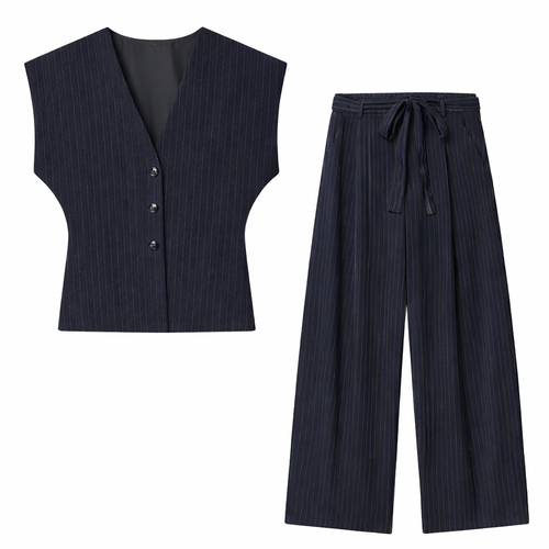 KONDALA Office Lady Chic Brown Suits V Neck Striped Loose Blazer High Waist Wide Leg Pants Fashion 2025 Fall Casual WOmen Suits